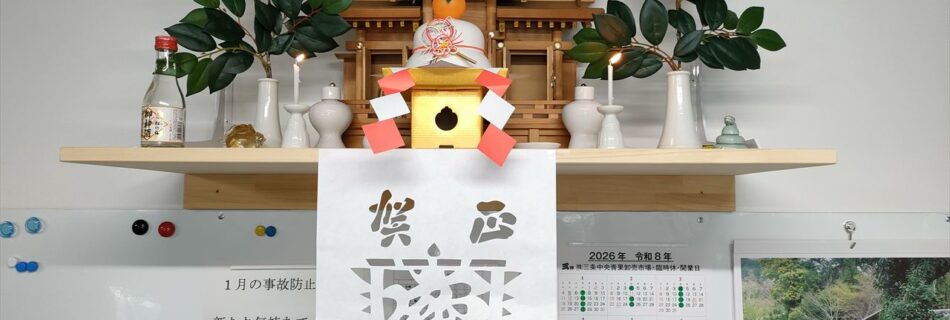 仕事始めby kanematsu_gestion日常投稿日: 2026年1月5日2026年1月6日コメントを受け付けていません あけましておめでとうございます 2026年の仕事始めです。 みんなで揃って神棚に向かって二礼二拍手一礼 交通安全をお願いしました カネマツ運輸は5日(月)から営業です。 新潟県下は雪が積もっているようです。 安全運転で! … 続きを読む “仕事始め”